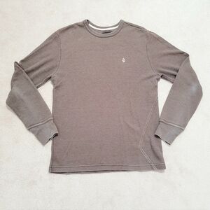 VOLCOM Rogan Heather Thermal Long Sleeve Brown Shirt Size L *wear On Elbow*
