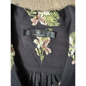 VOLCOM - STORMY TROPIX SS DRESS Black Mini Dress Summer Floral Size Large