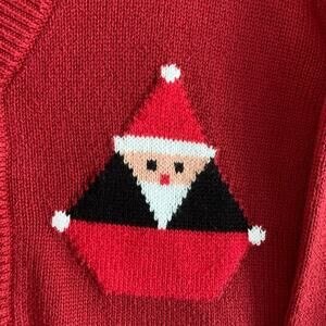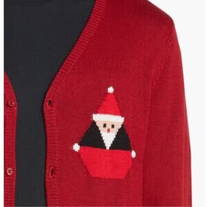 A Santa sweater you actually WANT to wear! Gorgeous cardigan with intarsia-knit Santas at the chest and back.