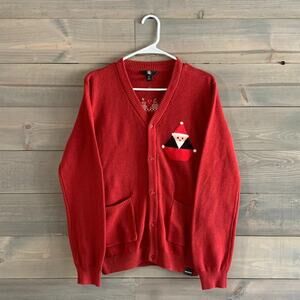 VOLCOM | Santastone Red Graphic Cardigan Size Small Christmas Holiday Cotton