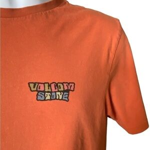 VOLCOM Stone Cool Logo Orange Short Sleeve Tee Shirt Men M Medium Modern Fit