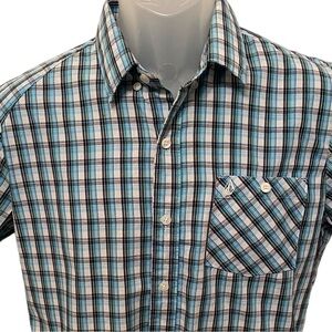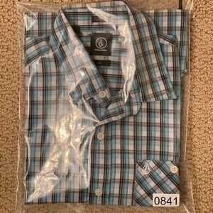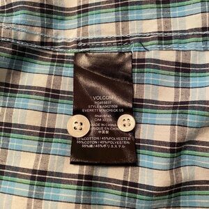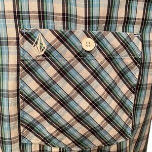VOLCOM Stone Plaid Classic Fit Blue, Green & Black Plaid Shirt Men SP Small