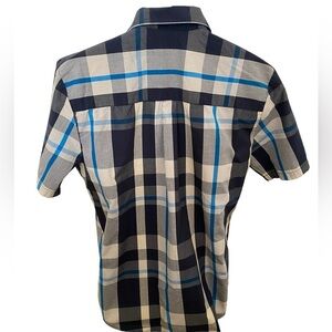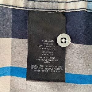 VOLCOM Stone Skate Blue & Gray Plaid Short Sleeve Collared Shirt Men L Large