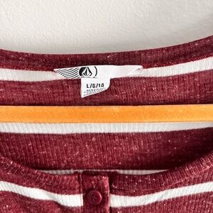 VOLCOM Striped Ribbed Henley Top