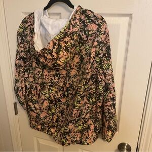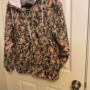 . A lightweight quarter zip windbreaker featuring a water-resistant finish, exposed zipper, and side entry pockets. Small new