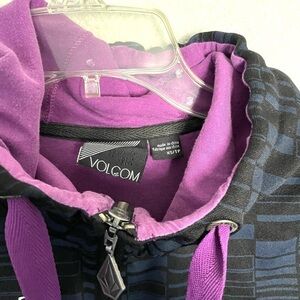 VOLCOM black & purple print full zip hooded sweater,