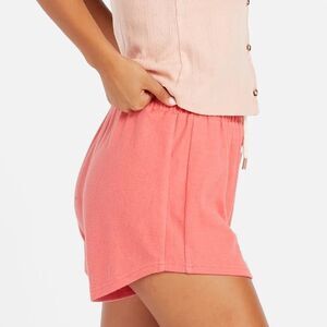 VOLCOM NWT LIVED IN LOUNGE LIL FLEECE SHORT IN A GORGEOUS ELECTRIC CORAL SIZE MEDIUM MSRP $ 35.00