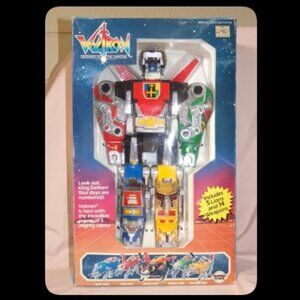 Voltron is 100% COMPLETE with all original accessories, blazing sword, star shield, lion swords, lion guns, instructions, and Panosh Place catalog.