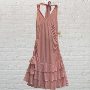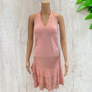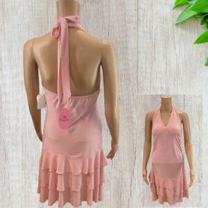 VOLUME ONE -- Halter Dress with Ruffled Skirt, Ties at Neck, Pink, Backless, NWT