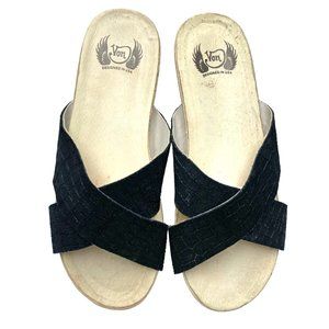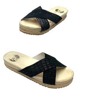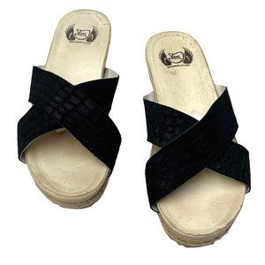 VON DUTCH Crossover Black Embossed Suede Platform Slide Sandals