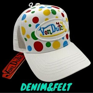 VON DUTCH White Polka Dot Trucker Hat/Snapback | NEW/NWT ♥️🖤💙💚💛