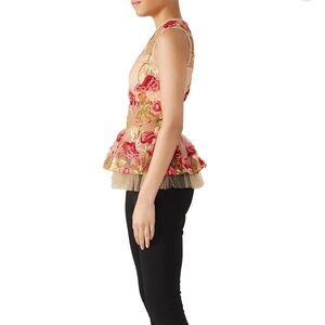 Beautiful embroidered garden of in this stunning printed peplum top with vivid floral embroidery by Vone.