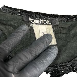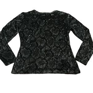 VOTRE NOM Vintage Snakeskin Black Metallic Stretch Long Sleeve Blouse Top Size Small