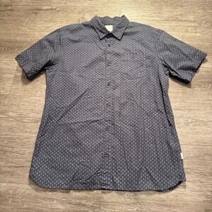 VOYAGER Shirt Mens XL Gray Geometric Print Short Sleeve Button Up Cotton Adult