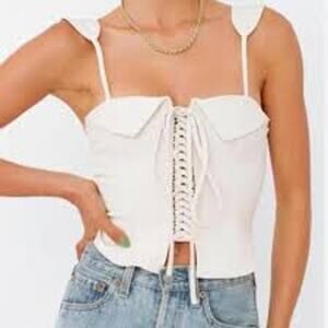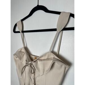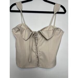 VRG GRL Corset Crop Top Size 10 Milkmaid Lace up Bustier Style Blouse Taupe