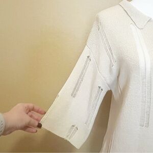 VRG GRL Distressed Oversized Relaxed Fit Knit Collared Polo Neutral Tan AU 6/ XS
