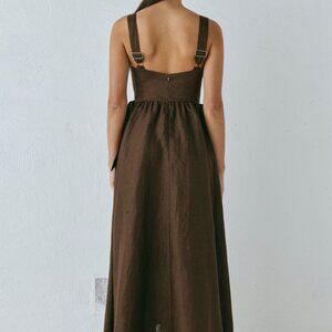 VRGN GRL Daphne Linen Midi Dress Chocolate Size 2US/6AU
