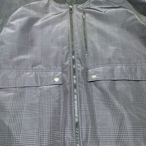 This black bomber jacket features a sleek stand-up collar and elastic cuffs, offering a stylish and comfortable fit. Made from a smooth, lightweight fabric, it's perfect for casual outings and provides a modern look.