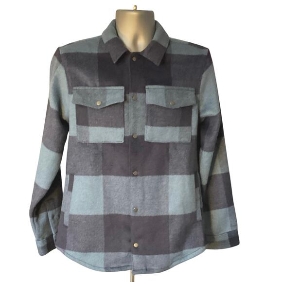 VRST Wool Blend Blue Buffalo Plaid Shirt Jacket Shacket Size S