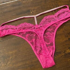 Victoria’s Secret lace in a beautiful rose pink color. Rhinestone details on the back new