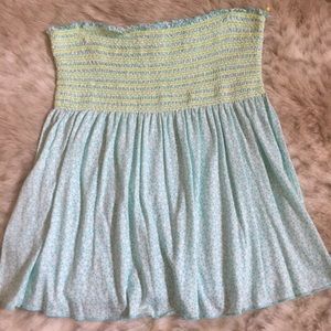 Like New, perfect condition, turquoise / white w/yellow thread. Material: 60% Modal, 40% Cotton. Beautiful colors. Bust area is stretchy to fit XS - M. Light and flowy. Bundle 2+ items and save!