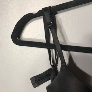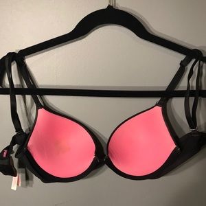 slight push up bra. cups lightly worn and foundation stain on inside of one cup. great condition overall.