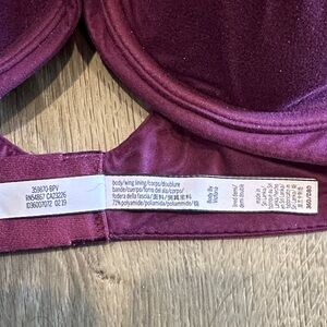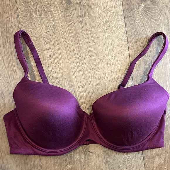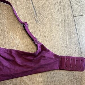 Purple/Maroon underwire bra. Lined but not padded. Slight lace detail. Adjustable straps can cross in the back as well. Light wear. Smoke free home.