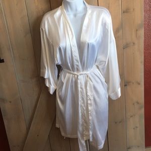 Absolutely stunning. Must have for every bride! Worn once. White robe with interior strings for better closure and a sash to tie around the waist. Bride is across the back in glitter and small rhinestones. Minimal snagging as pictured above otherwise great condition💕