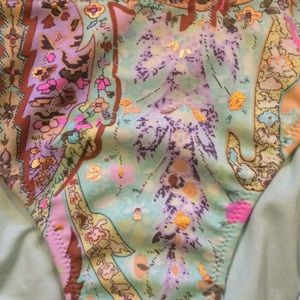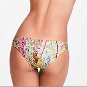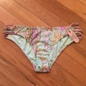 Sexy VS Cheeky bikini bottom. Beautiful print with gold glitter detail. Hot strappy sides. Small