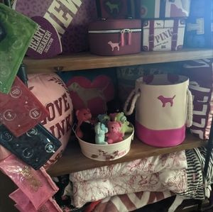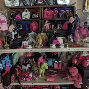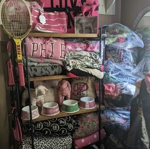 @silkpurse369 lol I get it. how much on the dog bowls? I have the big polka dot and the ceramic pink wow one. that's also me who sent you an offer for the star shelf & tennis racket ol