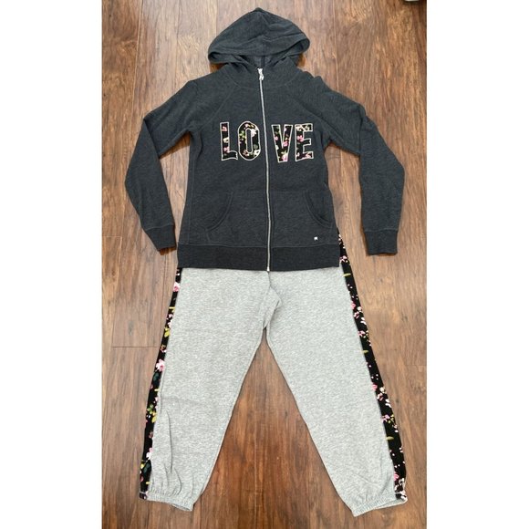 VS Full Zip Hoodie And Capri Sweat Pants SIZE Small Charcoal & Light Gray Floral