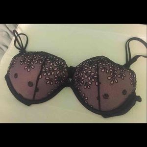 Pink and black mesh floral bra from the "gorgeous" style bra from Victoria Secret