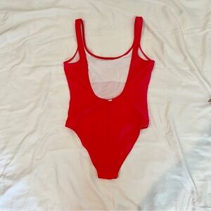 VS HOT PINK 90s Minimalist Scoop Back Solid One Piece Swimsuit. Not sure why my pics are pulling Red but it is hot pink. The photo with the gold logo on back is an accurate color. Excellent condition. High cut scoop one piece. No padding. Has place to insert some.