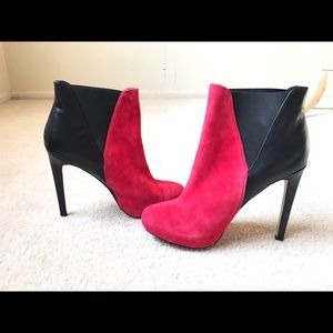 VS Hot Pink Suede Black Leather Ankle Boots 8.5 B
