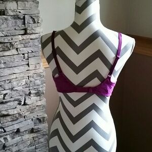 Worn but in good condition. Purple and lace. Not itchy at all has liner between skin and lace.