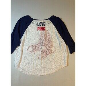 VS MLB PINK Victoria's Secret Boston Red Sox Top Womens Small White Blue Sheer