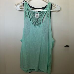 NWOT Victoria's Secret lace back semi cheer tank, crafted in a soft and stretchy lightweight cotton and poly blend. Available in beautiful mint featuring a relaxed fit, scoop neckline, and stunning lace back. perfect for dressing up or down. PTP is 21” and stretches to 24” and Length is 30”.