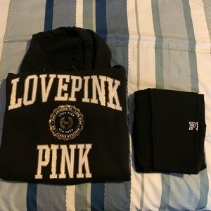 Victoria secret pink Set, only wear 3 times includes. Hoodie and Legging Fleece fabric. Comes with Reusable gift box with handles. Imported cotton/polyester; cotton/elastane.