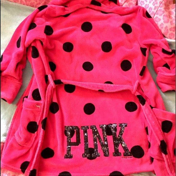 XS SMALL X COULD EASILY BE CONSIDERED ONE SIZE X PINK N BLK PLUSH SHORT ROBE