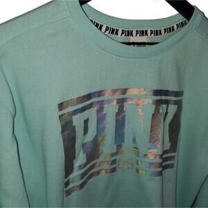 Vspink crewneck sweater pullover pull over graphic logo xs turquoise light pastel victorias cozy warm lounge loungewear