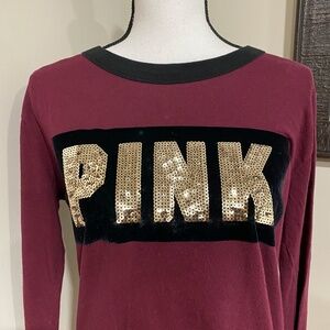 **VS PINK* Burgundy Gold Sequin Logo Long Sleeve Size Small