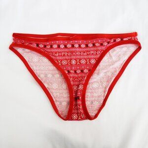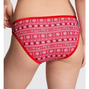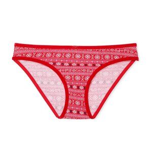 VS PINK COTTON VELVET-TRIM BIKINI PANTY HOLIDAY WINTER (M) NWT!