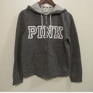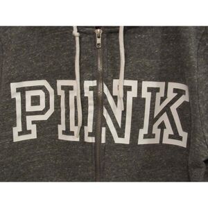 Full-zip hoodie with a classic white "PINK" spell-out logo and matching joggers with the vertical logo print on the leg. A versatile, foundational set. Full-zip hoodie with a classic white "PINK" spell-out logo and matching Joggers! Excellent shape with mild pilling. Both are size large.