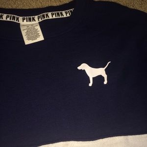 Navy blue, white, and gray VS PINK Crewneck. Size XS but runs big. SOLD ON MERCARI