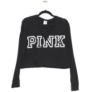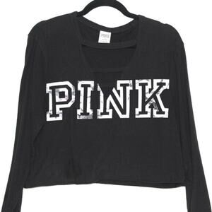 VS PINK Cut-out Detail Black Crop Top Long Sleeve Size Medium
