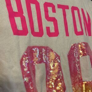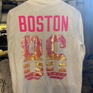 Victoria, secrets VS pink quarter zip pull over sweatshirt white with neon pink logo on the front back says Boston (like boston MA,or red sox! Or patriots or bruins & celtics!)