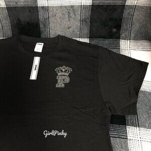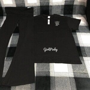 VS PINK STRETCH COTTON FOLDOVER FLARE LEGGINGS IN PURE BLACK BLING & CAMPUS SHORT SLEEVE TEE IN LIMITED EDITION. BOTH HAVE THE BLING LOGO ON THEM. MATCHES PERFECTLY TOGETHER. THE TEE DOES IT SLIGHTLY OVERSIZED.