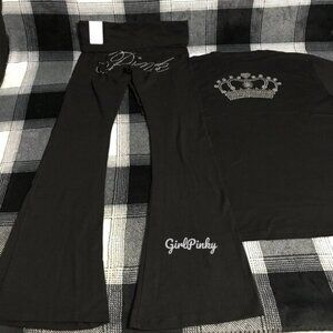 VS PINK FLARE LEGGINGS IN PURE BLACK BLING & CAMPUS TEE IN LIMITED EDITION XS-2X