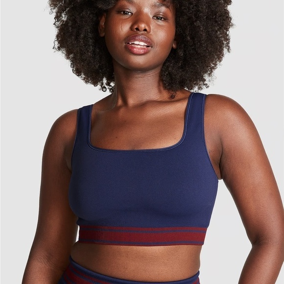 New with tags, VS PINK Flip It Seamless Reversible Sports Bra. Color is midnight navy with maroon on the other side. Can be worn as a crop top as well. Size medium.
