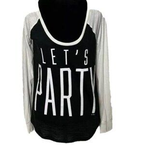 VS PINK Graphic Tee Size M Lets Party Long Sleeve Scoop Lounge Shirt Dorm Life